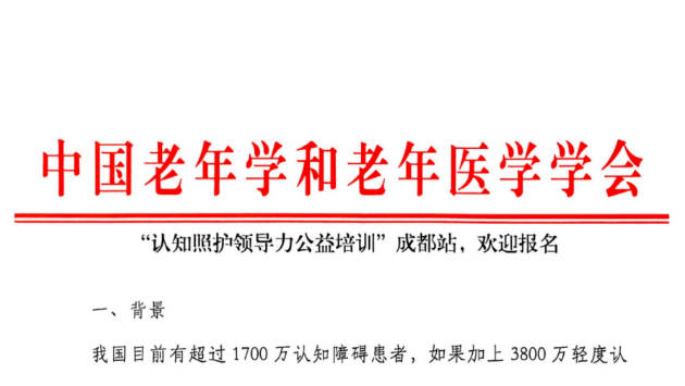 速来!“认知照护领导力公益培训”成都站欢迎报名